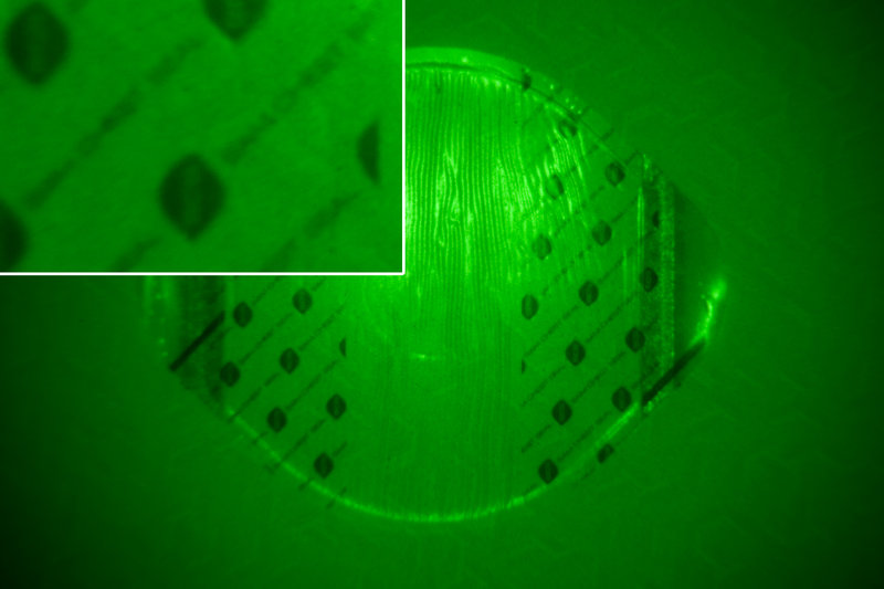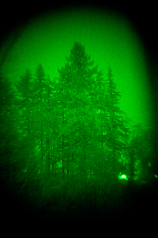 I'm shooting this very awesome job for a company that makes bandages for the military. They're made to glow under night vision so they can be applied in complete darkness, and the company wants some photos of it glowing. They gave me a sweet night vision scope and some rings to attach it to a 50mm lens. This is all attached to my 5D Mark 2 and set up in my bathroom with absolutely no light coming in from under the door or anywhere else.