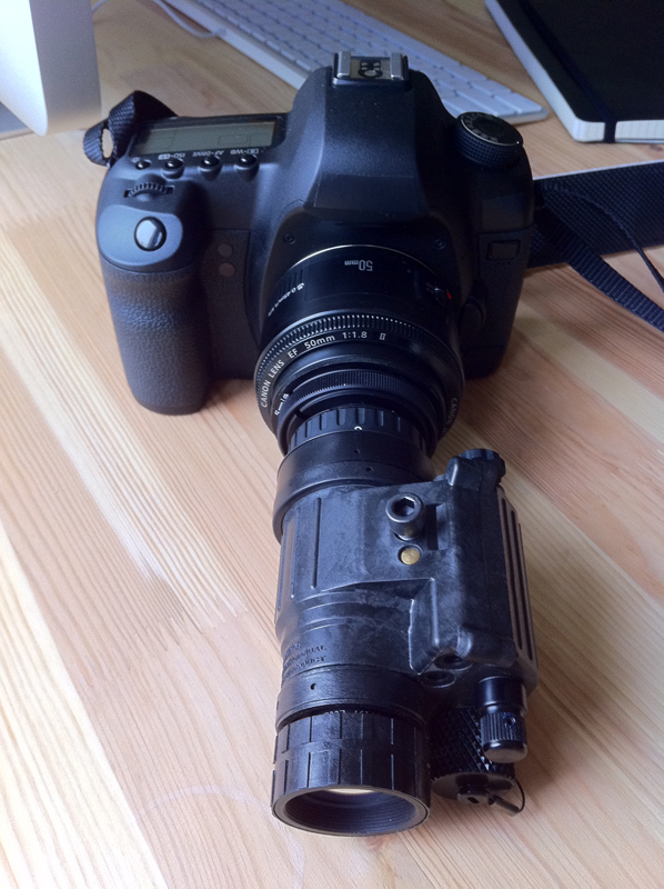 My problem is that this high tech set-up can't focus. I have the focus ability to focus further and closer, but when it's right in the middle it's not clear or sharp. It seems like I can focus on a 'floating element' somewhere between my camera body and the end of the night vision, so is it possible that by adding the adapting rings I just can't focus?