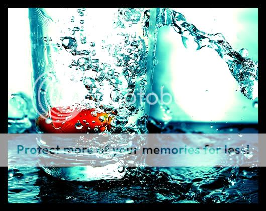 hi all, thanks for your kind replies and suggestions! :) ah..that orange thing was a cherry tomato...i thought it was the most suitable item i had in the house..unfortunately i later found out it wasn't very effective in giving me a splash effect...decided to leave it inside and just pour water into the glass instead.