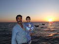This picture is horizontally spitted. The head and skin tones fit with the sunset. The t-shirt with the sea.