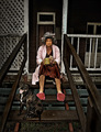 Never say that you will do something and expect me to forget it or let you get out of it!!!! So then I started thinking of locations and props. I went to the local second hand shop and bought the biggest bra I could find (even that was a squeeze to get on him) and a nightie. Some socks to stuff the bra, hair rollers, wig and slippers later I had his outfit. I went to the local Tourist Bureau and asked for permission to shoot on the front steps of the Pioneer Village. They couldn't stop laughing and rang the co-ordinator who gave me permission.