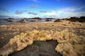 We spent time on many different beaches, including one beach that had a late delivery of Coral Spawn. This event occurs annually, usually around September/October. But for some reason it came in late December. At one time of the year all of the Coral of the Great Barrier Reef release their spawn. If the winds are right, this gets carried up onto the beaches. It sits there for a few weeks and is incredible to see. It has a rotten but strong odour and the foam is of yellow colour. The rock pools get filled with the spawn and turn the water bright red. The water surface gets covered with an oil spill like resemblance and because it sucks the oxygen from the water, any fish in the rock pools die. Here are some shots to show you what I mean.