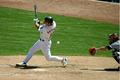 edit for the question Alex posed above, this is about 320mm, shot from about 25 rows behind the dugout, but the Coliseum has a ton of foul ground.