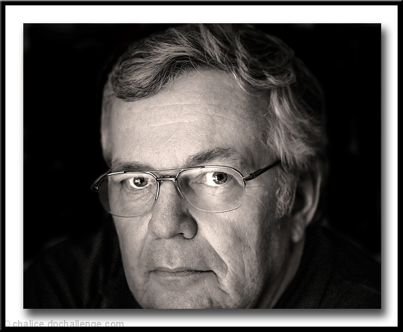 First I made some adjustments in LR5 as a color image, like adjusting the camera calibration, setting the white and black points, adjusting exposure, contrast, highlights, shadows and clarity. I also played with the tone curve and detail tabs. Then I switched to PS cc where I needed to crop, convert to B&W in Nik, dodge and burn, clone blemishes, sharpen globally and locally (it probably would be a good idea to clean my glasses next time), curves with a mask to darken the background, add a slight filter to warm it up a little, add a frame, and maybe a couple more similar steps that I have forgotten.