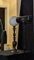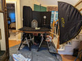 There wasn't much room, so I had to put a black backdrop over a china cabinet to hide it, a black bag over the tv tray, and a black vflat behind everything.