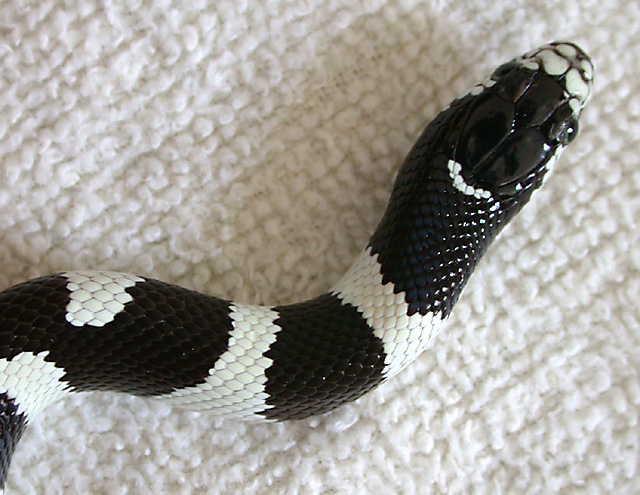 | Very cute! A nice photo. Great focus, but it seems like the whole photo would have been improved by a different colored background, the background you employed is the same as one of the colors of the snake, which lessens the contrast. |