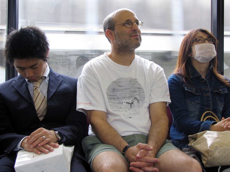 | Wow, this reminds me of the T in Boston where everyone tries so hard to avoid eye contact. This is a fantastic capture of the culture and times of this city right now. The box, the mask, the very modern hair styles on the end subject, the sleeping business guy, the very pale guy so scruffy and unshaven between two very well primped others. Loving so much about this shot. Very nice capture! |