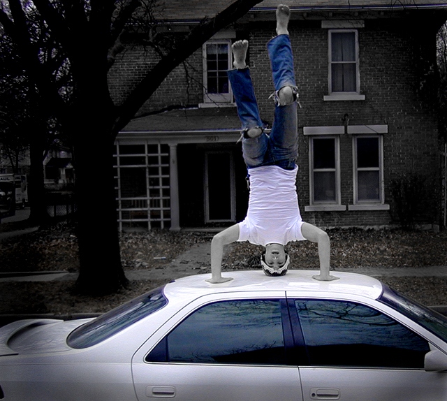| Was this your own car you dented, or someone elses? :-) I do like the blue. |
