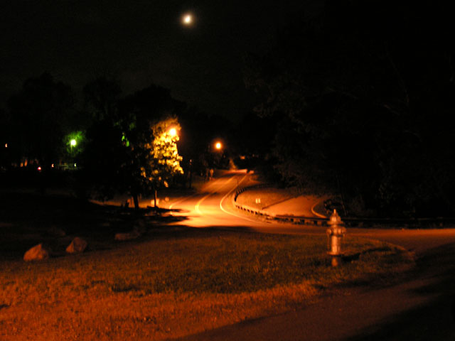 | The line of the road is good. I think the lighting is maybe a bit too yellow, though (try white balance in camera or photoshop?), and honestly the one fire hydrant bothers me a bit, maybe because it breaks up the nice line of the road. Otherwise, a very nice shot. |