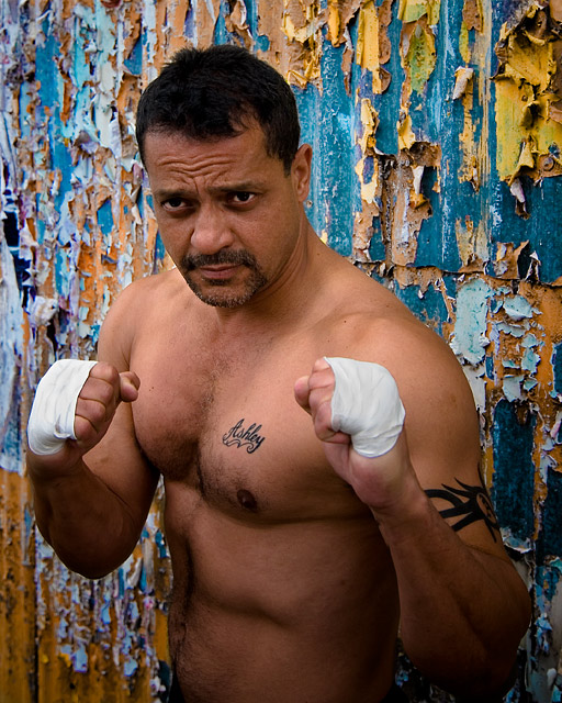 | this is cool...love the background. It might have been more powerful with eye contact from the fighter. ?? |