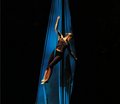 | Nice capture - Love the colours and slight movement - Just can't help think a real winner has been lost here - She is just a little too close to the top of the frame which makes composition a little awkward - I just feel photographing her when she was going out with her head back would have added some real drama and also just adding a tad more black background on the base of the shot would have grounded it. Still nice but I do feel a better pic could have been gotten. |