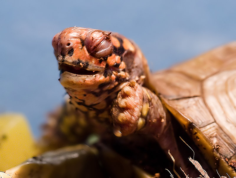 | Fun stuff. His colors complement the background nicely. Looks like he was moving maybe, as the focus is a little shaky in spots. Of course, I have no tips for keeping a turtle still. |