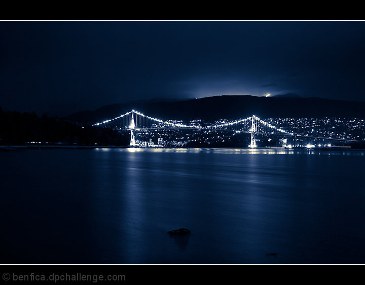 | Very good job on getting the water as well as the lighting on the bridge, city and top of the hill. |