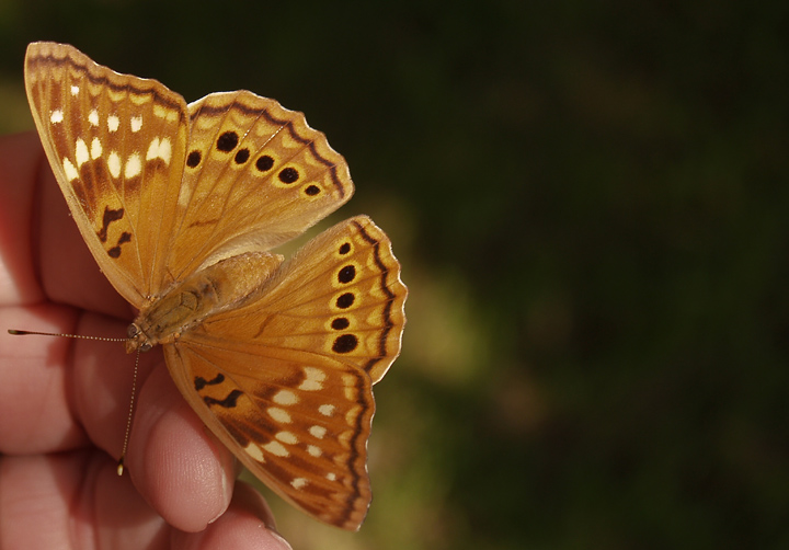 | Very cool capture :-) I'd be honored to have a butterfly calmly sit on my hand. |