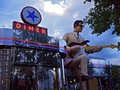 | Good for including the entire sign and fitting in the horse figure. Could be stronger from a vantage point a bit to the left and closer -- to reduce the impact of the upright pole and to avoid the distracting traffic (if possible without getting run over!). |