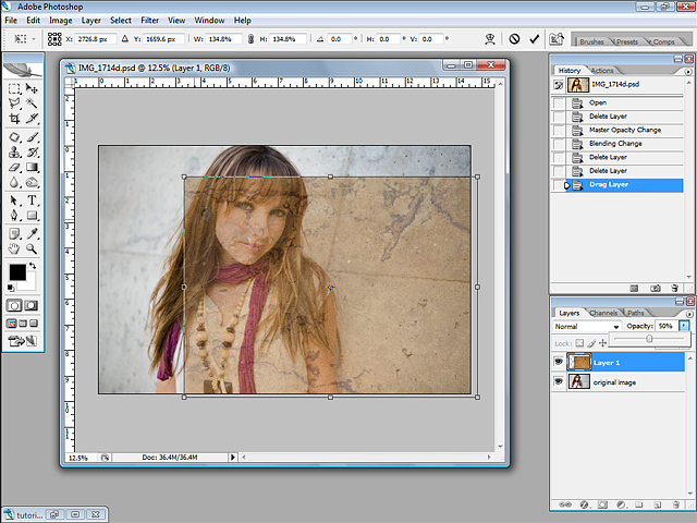 Well, the first thing you'll want to do is grab a cool free texture from a site like this one- http://www.mayang.com/textures/ Drag it on top of the image you'd like texture in. You should stretch the texture so it covers the entire image by selecting your texture layer and clicking on edit > free transform. It helps to reduce the opacity by about 50%. This way you can see how the texture is laying over the original image. Try and rotate it, stretch it more- just see what looks good! and then change it's layer mode- I used overlay on this one, but check them all out because they each have different effects. Usually you'll want to desaturate the layer too so click on 'create new fill or adjustment layer' and click Hue/Saturation.