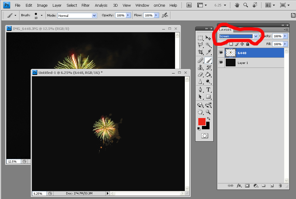 At this stage, the magic of the blending mode won’t be apparent. But as you add more and more layers, the fireworks will combine to form a wonderful finale image.