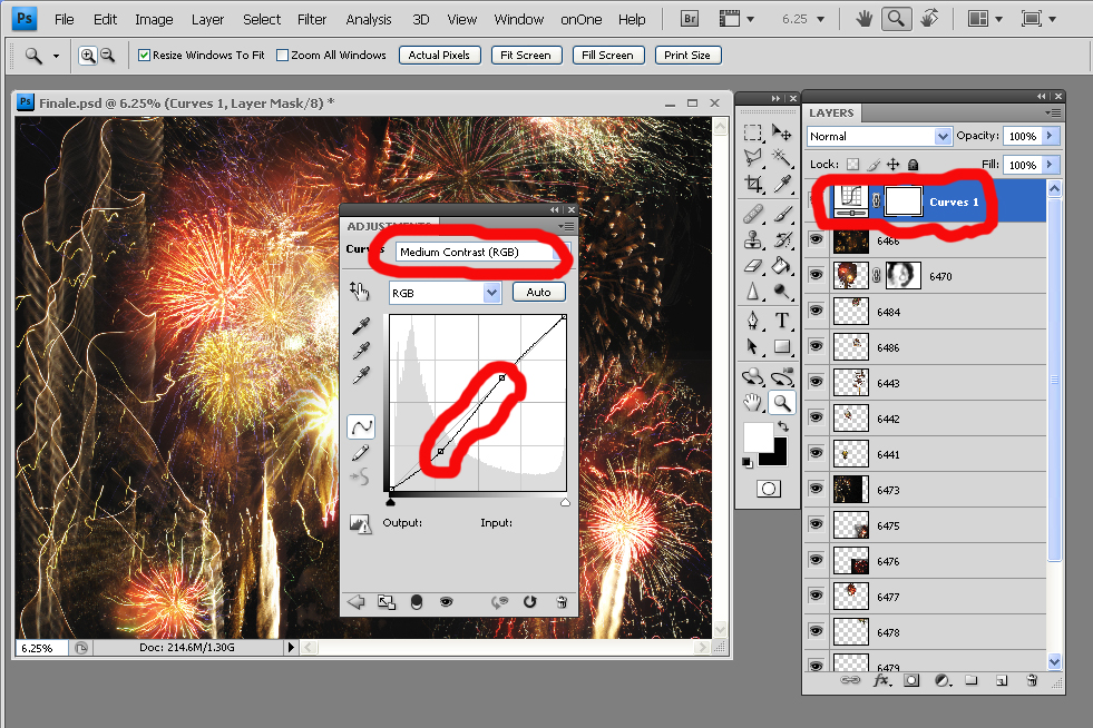 - To finish the photo, I like to add a little contrast. Add an adjustment layer using Layer>New Adjustment Layer>Curves. You might try Medium Contrast, or try adjusting the control points as below.