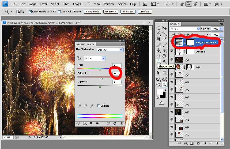- I also like to boost saturation a little bit to make the image more vibrant. Use layer>New Adjustment layer>Hue/Saturation and boost the saturation until you’re satisfied. I chose +8.